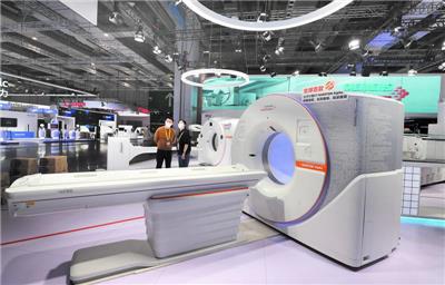 11月2日拍摄的德国西门子公司在进博会展台展出的大型医疗设备。 新华社