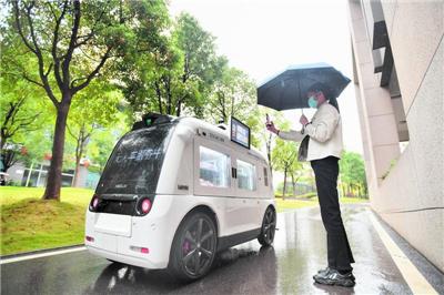 近日,多台无人驾驶零售车在湖南湘江新区的湖南省检验检测特色产业园内试运营。无人驾驶零售车按照规划的线路行驶,其货柜可容纳饮品、食物等,并具备冷藏、制热功能,为园区员工提供便利的“无接触”购物方式。