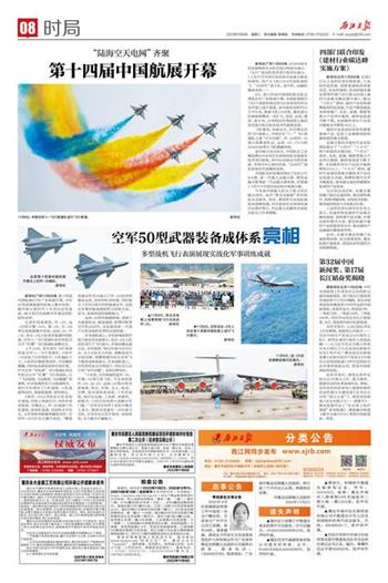 新华社广州11月8日电 第十四届中国航展8日在广东珠海开幕,空军50型武器装备在航展上集中亮相,集中展示新时代十年的历史性成就,展示现代化战略空军建设的阶段性成果。