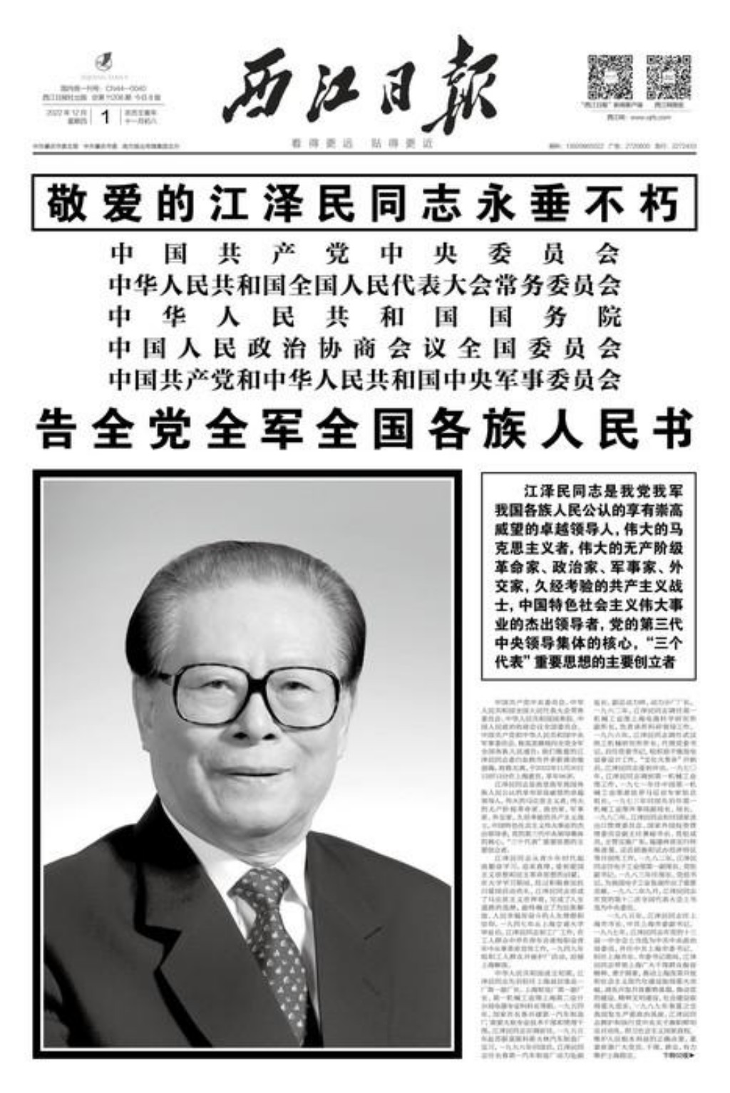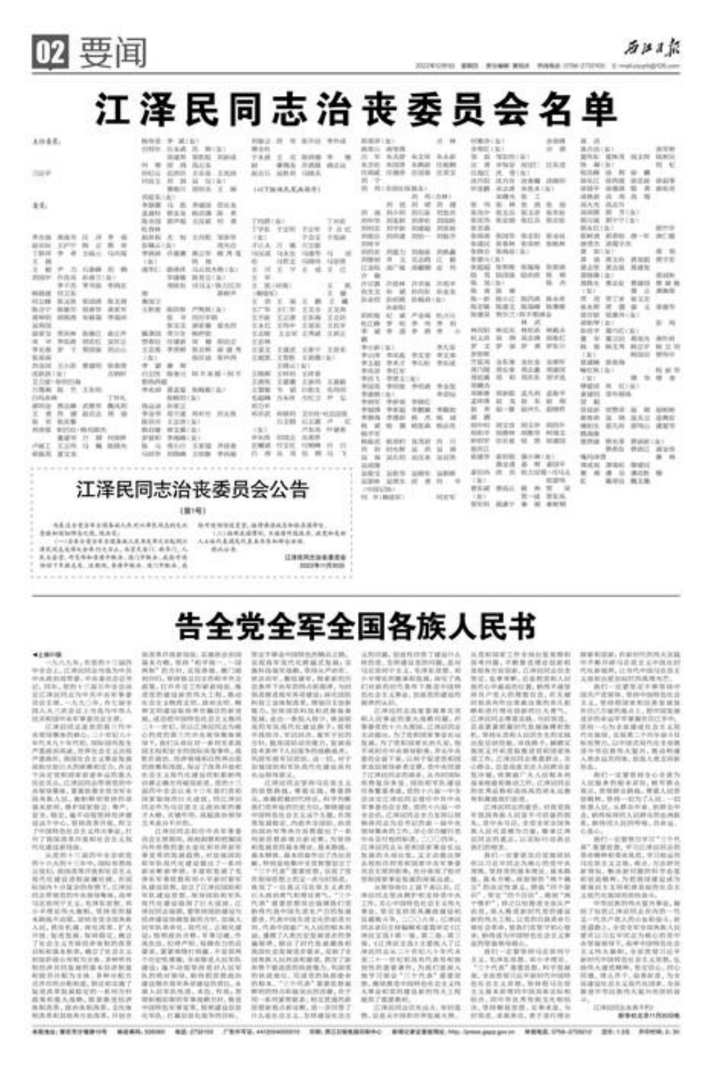 江泽民同志治丧委员会公告