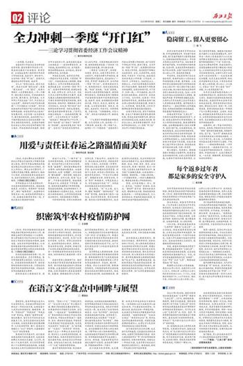 “广大党员干部要聚精会神谋发展,扎扎实实抓工作,把问题一个一个解决掉,把政策一项一项落下去,把项目一个一个建设好。”省委经济工作会议在部署工作的同时,向广大党员干部发出了号召、提出了要求。全力冲刺一季度“开门红”,就要强化责任担当,转变工作作风。每名党员干部都应当涵养务实、求实、扎实的作风,说到做到、干就实干、干就干成,把抓落实具体体现在工作举措、工作流程、工作环节、工作实效上,力戒形式主义、官僚主义,不折不扣贯彻落实省委经济工作会议精神。各级领导干部既要当好指挥员,还要当好战斗员,扑下身子、沉到一线,一竿子插到底,把工作抓实抓细抓落地,在务实功、求实效上下功夫。与此同时,还要进一步完善考核评价体系,推动各地各部门把全部心思和精力用在谋发展、抓执行上,比学赶超、赛龙夺锦,以钉钉子精神把各项任务落地落实落到位。