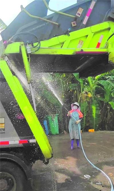 1月8日,一辆环卫车缓缓驶入高要区莲塘镇波洞村村道,靠边、停稳。谢三妹迅速下车,清扫干净垃圾桶周边的垃圾、污迹,然后将垃圾桶推放到合适的位置。准备就绪后,她启动垃圾回收运输车的设备开关,满满一大桶垃圾就稳稳当当被“吞”进了车内。