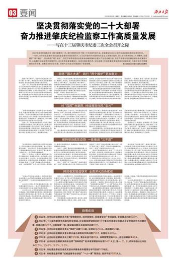 2022年,全市纪检监察机关开展“疫情要防住、经济要稳住、发展要安全”专项监督,发现重点问题122个。