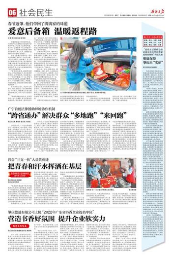 “里面有我父母在老家做的腊肉,有家乡出产的特产,还有亲朋好友的心意。我一并带回肇庆,与这边的同事、朋友共同分享家乡的味道。”令狐大波如是说。