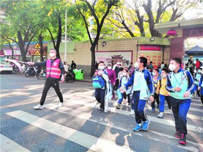 潘秀坚是其中一名护苗志愿者,也是该校四年级学生家长,已多次参与学校组织的各类志愿活动。“平日里,我们主要是协助学校,在校周边维持交通秩序,护送学生有序上下学,保障高峰时段校门口道路畅通和安全有序。”谈及志愿服务工作,他尤为自豪,“能用实际行动为学生保驾护航,我觉得很有意义。”
