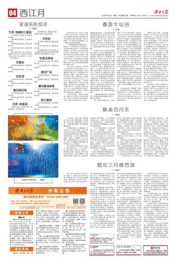 河道的北岸山体是悬崖峭壁,山壁之上长满了褐藤青树,绿影婆娑,藤蔓挂壁,凝翠叠绿,绚丽如画。徜徉于人工搭建的木板栈道之上,便觉“迟日江山丽,春风花草香”,甚是怡情悦性。刚踏上栈道不久,我惊奇地发现一根碗口大的藤蔓,虬藤曲绕几条粗壮的树枝十数米,藤蔓挂满了禾雀花,一朵朵花吊挂成串,如万鸟栖枝,神形兼备,风情万种,很是迷人。禾雀花开,馥郁芳香,春的气息已在牛仙谷浓墨重彩地蔓延开来。同行的摄影家们频频按下拍摄按钮,咔嚓咔嚓拍下妖娆百媚的禾雀花。我也完全沉浸在融融春光之中,久久不愿挪动离开的脚步。痴望着那千姿百态的禾雀花,我情不自禁地吟诵道:“万种风情笑客痴,攀山越岭恨来迟。叠层禾雀花千串,留影奇林那愿离。”