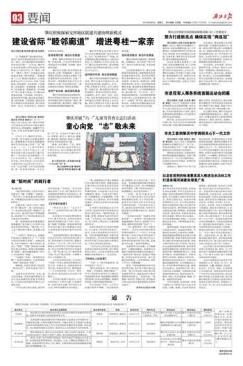 肇庆市以党建引领交界地区基层治理,实施“党建联抓”,推动交界地区党组织之间建立县镇村三级党建联席会议协商机制;实施“干部共育”,探索粤桂党校合作办学新模式;实施“红色资源共享”,推动两地充分挖掘、用好红色资源。