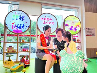 结合儿童的特点和需求,网点内为儿童配备安全舒适的爱心专座、无障碍小于30度的坡度、儿童呵护箱、绿色服务通道,让家长和儿童享受定制化的金融服务。