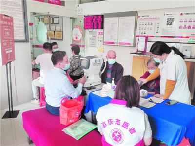 广发银行肇庆星湖支行为老年人开展义诊服务。