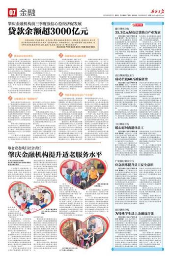 截至2023年9月末,肇庆农商银行适老化网点为银发客户提供人性化服务38次,组织金融知识宣传活动16场,惠及银发客户360多人。