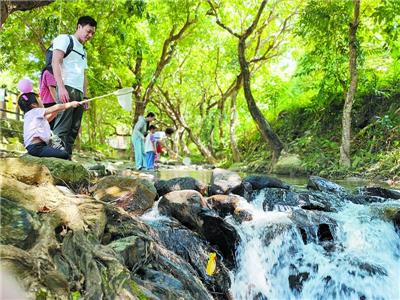 在兰龙社区龙溪栈道旁,溪水清澈见底,缓缓流淌。不少市民游客带着孩子慕名而来戏水,在树荫底下感受初秋的清凉。“这里环境很好,适合小朋友玩,捕小鱼小虾。”市民邓先生说。