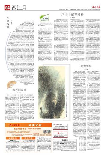 今天,方林特别来到摔跤处看看自己种下杉树,它也有碗口这么粗了,修长的躯干直指苍穹,披一身绿色钢针,黄色松烟般的外皮,朴实而柔软。他抚摸着杉树上两道特殊刀口——这是方林离开林场去读书时留下的。四年后长成两道疤痕。方林把手掌放在疤痕处,轻轻地闭上双眼,感受到从杉树有一股神秘的力量汩汩流入体内,似乎在召唤他回到岳山这片土地。