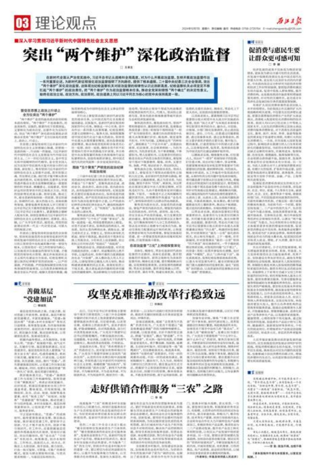 突出“两个维护”深化政治监督□ 王承文
