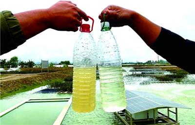 “这是悬浮式高效生化尾水处理设施,鱼塘尾水经过这座水池后,污水也能变清水。”华航环境发展有限公司、肇庆市高要区养殖尾水项目负责人刘俊祺告诉记者,今年1月,他们根据高要区政府的要求,在这里建成养殖尾水治理设施,采用“缓冲+曝气生化+生态净化+曝气充氧”的核心工艺,利用高效纤维填料,辅以微生物菌种和活性酶,实现尾水的循环利用或达标排放。