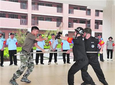 在肇庆市第十六小学睦岗校区培训现场,教官们从实战出发,紧紧围绕常见安防器械的使用技巧,重点针对个人极端暴力行为处置、可疑人员身份核查、校园先期应急处突、呼叫警力支援等多个场景逐项开展模拟演练。通过现场演示、手把手教学等方式,教官们组织参会人员对盾牌、钢叉、长棍等器材进行反复练习,确保能在发生暴力袭击事件时,校园安保人员能筑起第一道屏障,限制暴徒进一步行动并迅速引导师生安全躲避,保障师生安全。