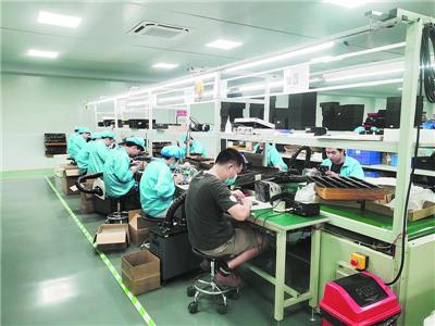 滋滋滋……走进肇庆市和佳电子有限公司厂房,记者见到一群工人正在流水线上紧张地焊接电子设备,旁边分拣、测试等工作也在有序地开展着。