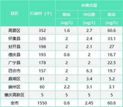 肇庆市生活饮用水水碘含量调查结果。受访单位提供