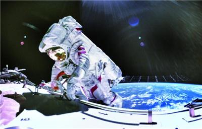 3月2日,在北京航天飞行控制中心拍摄的神舟十七号航天员汤洪波在空间站组合体舱外作业。