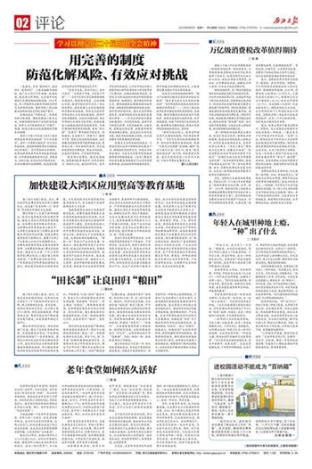 制度是应对风险挑战的保障。“建立产业链供应链安全风险评估和应对机制”“健全重大技术攻关风险分散机制”“筑牢有效防控系统性风险的金融稳定保障体系”……《决定》提出的很多改革举措直接涉及风险防控,直面问题、解决问题的体制机制设计不胜枚举。更好完成建章立制的任务、筑牢制度堤坝,就能下好防患于未然的先手棋,备好解决问题的高招,提高应对各种风险挑战的预见性、有效性。