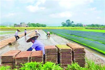 8月1日,鼎湖区沙浦镇桃一村,广东庆硕云农业发展有限公司员工正在地里培育晚稻秧苗。该公司在鼎湖区承包了2000亩稻田,早稻收割过半,同时又忙着晚稻备耕工作,其在沙浦镇培育的1.3万盘秧苗正茁壮成长,届时可提供约600亩稻田插种。如今,我市各地陆续开展晚稻备耕,预计插种面积127.16万亩,力争达到132.3万亩。