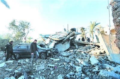 12月22日,在加沙地带中部城市代尔拜拉赫,人们查看一处遭以军袭击损毁的建筑。 新华社/路透
