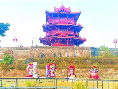 在府城遗址公园入口处,施工人员正紧锣密鼓地搭建以青花瓷花瓶、鲜花为灵感设计的连廊花灯,国风元素满满。