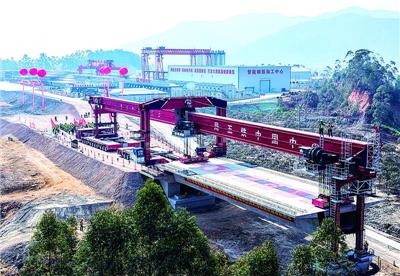据中铁五局肇庆制梁场现场负责人刘智介绍,肇庆制梁场位于肇庆市高要区金利镇山斗村,占地面积约134.9亩,主要承担本标段385榀箱梁的预制和架设任务。此次架设的首孔箱梁长32.6米,宽12.6米,高3米,重约700吨,使用了国内新型千吨级模块式运梁车和步履式单主梁三支腿架桥机, 下转02版▲▲紧接01版