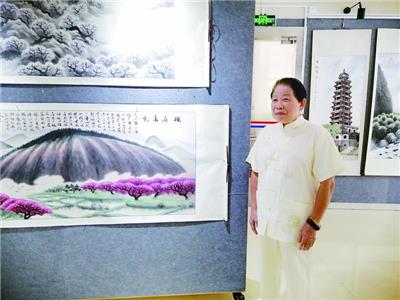 莫石鸿和他的书画作品。 西江日报通讯员 黄瑛居 摄