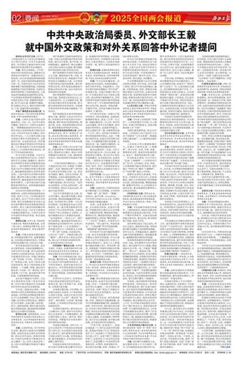 王毅:这段时间,中国的科技创新不断突破了人们的想象。从当年的“两弹一星”,到“神舟”、“嫦娥”,再到5G、量子计算、DeepSeek,一代代中国人的奋斗从未止步,中国的科技强国之路越走越宽。
