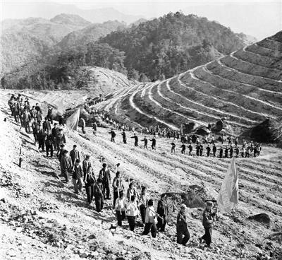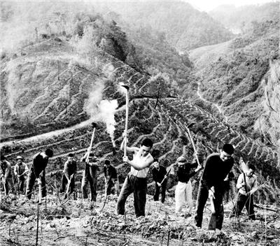 造林民兵挥动锄头垦地挖撩壕。