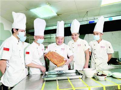 肇庆扣肉烹饪技艺在优化过程中,得到名厨梁卓彬、黄德勇等人的许多宝贵建议。“梁卓彬老师年近八旬,仍活跃在肇庆烹饪界,坚持培养新人,是我学习的楷模。以后,我也要把这项非遗项目传承给更多年轻人。”黄仲豪感慨道。