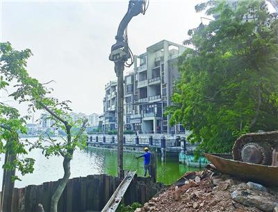 近日,在端州区彩云路,记者见到项目施工人员正操作着起重机,将钢板插在伴月湖里形成围堰,方便施工人员在里面修建雨水排水口。“彩云路段项目属于西江路蕉园村口易涝点治理工程其中一个路段项目,在今年3月1日开始施工,铺设雨水管长度约850米,预计在5月20日完成全线主管线路通水,6月中旬全线恢复通车。”市银华公司该项目负责人告诉记者,工程完成后,蕉园社区的雨水积水将通过新铺管网排到伴月湖,将有效改善蕉园社区及周边路段内涝顽疾。