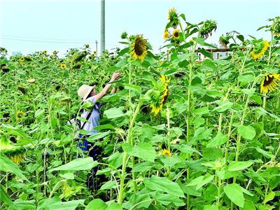 在鼎湖区沙浦镇黄布沙村,有游客不顾劝阻进入向日葵地里拍摄。西江日报记者 杨永新 摄