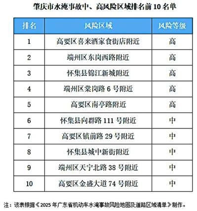 广东水淹事故中、高风险区域合计1395个。其中,我市共有水淹高风险区域5个,中风险区域41个。排名前10区域为高要区喜来酒家食街店附近、端州区东岗西路附近、怀集县锦江新城附近、端州区棠岗路6号附近、高要区南亭路附近、怀集县向群路111号附近、高要区镇前路29号附近、怀集县城中新街附近、端州区天宁北路38号附近以及高要区金盛大道74号附近。