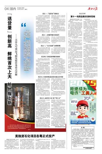 西江日报A04A04﹃送货量﹄创新高  鲜桃首次上天  舱外服上新 2025-07-16 2 2025年07月16日 星期三