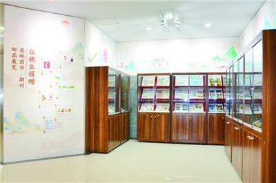 集邮图书、期刊、邮品展示区。