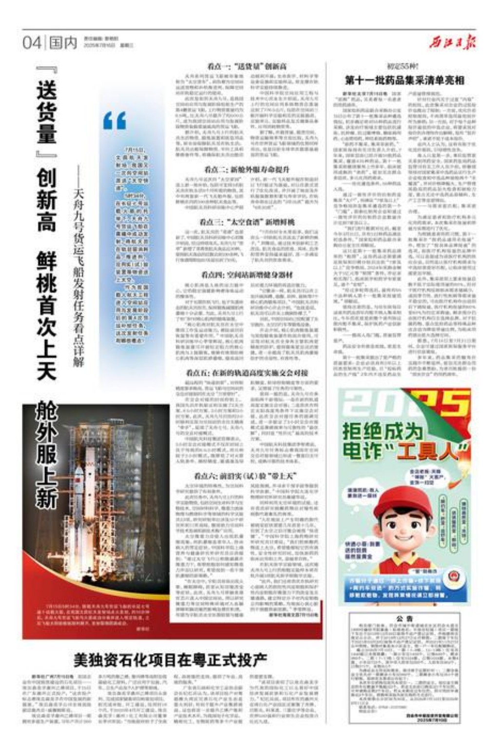 ﹃送货量﹄创新高 鲜桃首次上天 舱外服上新