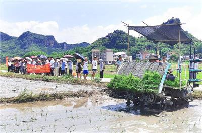 洪水退后,封开县组织种植大户开展水稻机械化插秧技术培训,提高种植效率和质量。 受访单位供图