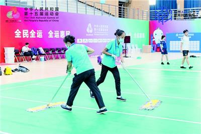 西江日报讯(记者 刘浩辉 通讯员 官冬兰 吴鑫怡)8月15日至20日,十五运会群众比赛毽球项目决赛在广州应用科技学院(肇庆校区)举行。在精彩赛事背后,一支专业的后勤保障团队默默守护着赛场环境的安全与有序。