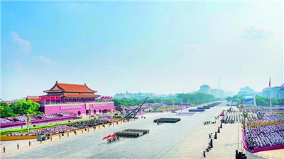 雄壮的军乐声中,习近平乘车沿着宽阔的长安街,依次检阅13个徒步方队、1个战旗方队、22个装备方队。受阅部队军容严整、意气风发,铁甲战车整齐列阵、威风凛凛。这是人民军队奋进建军百年的崭新亮相,这是中华民族捍卫世界和平的坚定宣示。