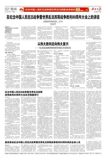 今天,我们隆重集会,纪念中国人民抗日战争暨世界反法西斯战争胜利80周年,共同铭记历史、缅怀先烈、珍爱和平、开创未来。