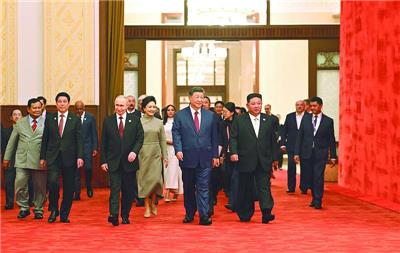 在喜庆欢乐的乐曲声中,习近平同中外嘉宾一起举杯,共同庆祝中国人民抗日战争和世界反法西斯战争的伟大胜利,共同祝愿世界和平。
