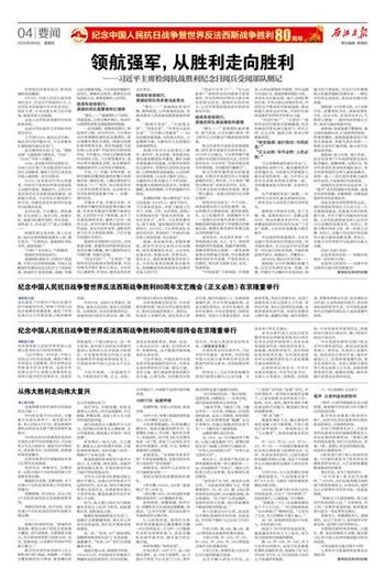 整场晚会将历史时空、艺术时空、情感时空交织融合,深情回顾了中国人民抗日战争和世界反法西斯战争波澜壮阔的历史, 下转04版▲▲紧接03版