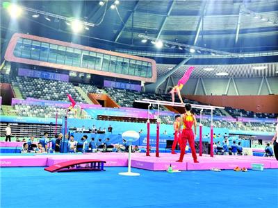 西江日报讯(记者 刘浩辉) 9月3日下午,第十五届全国运动会体操项目青年组比赛迎来首次赛台训练。各代表队纷纷亮相肇庆新区体育中心体育馆,开展吊环、鞍马、双杠、单杠、自由体操等项目的训练。