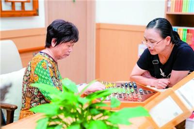 近日,两位老人在成都市营门口街道综合为老服务中心的阅览室下棋。